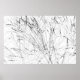 Pedaços pretos de erva de penas secas contra o fundo branco da terra coberta de neve. A confusão das linhas neat faz lembrar o desenho da caneta e da tinta. Geometria da estação de inverno. Impressões e presentes para qualquer um por diversão e bom humor. Wallart, impressão, poster, canvas para decorar seu quarto ou escritório