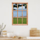 Uma cena pacífica de janela falsa. Passando as folhas das árvores e uma janela de madeira enquadra esta cena relaxante de um mar calmo esticando-se em colinas azuis no horizonte. No primeiro plano está uma área de pastagem verde refrescante. É como ter o oceano do lado de fora da sua janela! O 'quadro' é uma madeira de cor quente que se misturará com a maior parte do decor. Uma bela ilusão para criar uma atmosfera tranquila em qualquer sala.