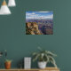 poster de 27" x 23" com uma imagem de uma vista do Grand Canyon, um canyon de lado íngreme esculpido pelo Rio Colorado, muito abaixo, no estado de Arizonas nos Estados Unidos. O canyon está contido e gerido pelo Parque Nacional do Grande Canyon, pela Nação Tribal Hualapai, pela Tribo Havasupai e pela Nação Navajo. O Grand Canyon tem 277 milhas (446 km) de comprimento, até 18 milhas (29 km) de largura e atinge uma profundidade de mais de uma milha (6.000 pés ou 1.800 metros). Ver arte correspondente em paredes acrílicas, arte em paredes triptych acrílicas, arte em paredes metálicas e impressão de canvas. Veja toda a coleção de Posters de Arizona na seção ART & POSTERS.
