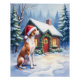 Pôster Great Dane Snowy Cabin Santa Hat Christmas Art