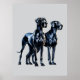 Uma ilustração estilizada de dois Grandes Dinamarqueses majestosos lado a lado, mostrando seus corpos elegantes, musculares e características elegantes. Os cachorros são negros com casacos lisos e brilhantes, acentuados por sombras dramáticas e destaques para enfatizar suas fortes físimas com um sutil efeito aquarela acrescentando um toque artístico.