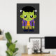 Um poster com uma imagem divertida do Dia das Bruxas com um monstro Frankenstein verde.