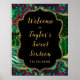 Este safari verde e temático tropical agata 16 doces sinais de boas-vindas festas de aniversário apresenta manchas-leopardo, listras-zebra, folhas de palma e flores. O texto combina o script manuscrito e as fontes sans serif modernas para um aspecto elegante e sofisticado. Os sotaques dourados falsos e a impressão abstrato criam a perfeita mistura de chic e na moda.