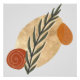 Um design de bolor inspirado em formas simples em cores rústicas de castanho, bege e e laranja com um pedúnculo vegetal floral como foco.