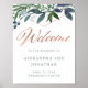 Esta placa elegante e elegante de boas-vindas do casamento apresenta uma forma geométrica falsa rosa dourada rodeada por belos galhos verdes e uma escrita manuscrita falso rosa dourada.