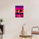 Um pôr do sol retroativo de ondas de vapor, nos anos 80, com redes neonatais, palmeiras e um horizonte brilhante. Perfeito para amantes nostálgicos de ondas sintéticas.