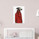 This digital illustration depicts a greyhound dog portrayed in a standing pose, dressed in a red wool-style coat and scarf. The style combines precise digital linework with minimal shading, resulting in a modern and minimalist look. A great gift for dog lovers and anyone who enjoys unique animal fashion prints, or those looking for humorous and refined animal portraits. To fit any style of decor, you can customize the design by changing the color shades and background, with the “Edit this design” function. Framed and unframed posters. Digital download of design available.