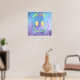 Obtenha um poster Groovy com um retroclássico rosto ocular púrpura e pastel azul- Lembrança dos hippies pop de arte dos anos 60 e 70