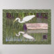 Grua de Egret Branco admirando-se no riacho. Assinado com kanji de "Dragão". tapete de impressão japonês incluído no poster.