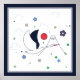 Poster Grua-voadora branca, vermelha e Abstrato azul-escu