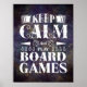Jogue com este poster legal para decoração da sala de jogos! Este poster de jogos personalizado apresenta a citação "manter a calma e jogar jogos de conselho" em tipografia mista com fundo de grunge roxo. Muitos tamanhos de poster estão disponíveis, com opções adicionais.