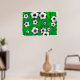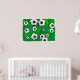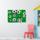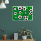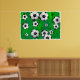 Ilustração de muitas bolas de futebol rolando sobre um fundo verde manchado e texturizado. Imagem disponível em vários presentes e produtos.
