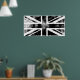 Ilustração a preto e branco de uma bandeira do Reino Unido ao estilo de vintage da Union Jack. Personalize e escolha facilmente a sua própria cor de fundo ou adicione texto. Imagem disponível em vários presentes e produtos.