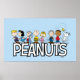 Conheça esta linhagem da gangue dos amendoins, apresentando Schroeder e Lucy, Linus com seu cobertor, Charlie Brown e sua irmã Sally, Pigpen, Franklin assistindo Snoopy dance, e Woodstock voando acima.