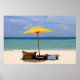 Guarda-chuva amarela na praia tropical em Phi Phi, Tailândia