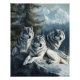Um poster captivador mostrando três lobos majestosos descansando sobre rochas rochosas de montanha. As suas poses tranquilas, mas vigilantes, evocam o espírito da natureza selvagem e a beleza inflexível da natureza. Perfeito para entusiastas da natureza, amantes da vida selvagem, ou qualquer pessoa que busque inspiração do mundo indomado.