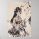 Poster ilustra uma gueixa, e arvores no fundo, no estilo Tradicional Chines.