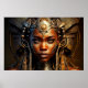 Retrato artístico digital de uma princesa guerreira africana estilizada de uma forma imaginativa afrofuturista. Este é outro design de 100% original de Hamster de Combate.