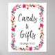 Este cartaz de cartões e presentes com coroa de flores de conto de fadas romântico é perfeito para um casamento ou chá de noiva com tema de jardim inglês. O design apresenta rosas e peônias em tons de rosa, pêssego e roxo em aquarela, dispostos em uma moldura floral delicada. A linha de texto na parte inferior do cartaz pode ser personalizada com a data, os nomes da noiva e do noivo, ou uma mensagem curta como "Obrigado". Desenhado com carinho por Miriam na Fresh & Yummy Paperie. Para itens coordenados, visite minha loja no Zazzle: