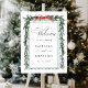 Este sinal de boas-vindas de casamento (cartaz) apresenta uma guirlanda de pinheiro de Natal em aquarela acentuada com um laço de fita encantador vermelho. Para uma personalização mais avançada deste design, clique no BOTÃO FERRAMENTA DE DESIGN AZUL acima! Itens correspondentes também estão disponíveis.