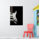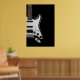 Uma fotografia de perto impressionante de uma guitarra clássica que apresenta o icônico design de corpo ao estilo Stratocaster com o seu acabamento branco contornado e protetor de picareta preto. A imagem mostra os componentes essenciais do instrumento: três pickups de solteiro-bobina, uma prancheta de pau-rosa com pinturas ponto-pérolas, hardware de cromo incluindo o sistema de ponte tremolo e botões de controle de volume e tom duplo. As curvas elegantes do violão e o artesanato profissional são destacados contra um fundo negro dramático, enfatizando o apelo do eterno do instrumento. Esse tipo de guitarra elétrica tem sido a base de rock, blues, jazz e incontáveis outros gêneros musicais, representando décadas de inovação musical e os sonhos de músicos em todo o mundo que moldaram o som da música moderna.