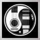 Este design Yin yang único apresenta o corpo de uma guitarra elétrica e uma acústica. As cordas das guitarras subem ambos os lados do padrão com os buracos circulares visíveis embaixo. Os corpos das guitarras tomam a forma da gota de lágrimas yin yang. Este belo símbolo de equilíbrio mostra a diferença entre guitarras elétricas e acústicas.