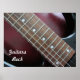 Um legal design com uma guitarra negra em um banco de burgundy. Mostrando cordas e fretes. Perfeito para uma sala de música.