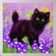 Poster com um gatinho preto Gustav Klimt! Esta beleza de olhos largos se coloca num campo verde de flores roxas. Um presente pensativo para amantes de gatos e entusiastas de arte austríacos!