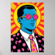 A retro-inspired Pop Art portrait of a fashionable individual, blending 1960s style with modern graphic design. The composition is energetic and eye-catching, ideal for prints, stickers, and apparel.