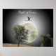 O ginasta voa sobre uma lua de cheio em um "voo de rico". Lua brilha o céu escuro e traça o ginasta que se estende em salto de médio. Hillside e árvores criam a base para a cena.