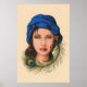 Gypsy, uma ilustração estilizada mostrando uma mulher vestindo uma pena de turbo e pavão azul de forma meio cigana. Desenho original feito com lápis coloridos pelo artista "Luna" Siffert. Produto personalizável. Você pode adicionar texto e imagens, mudar estilos e tamanhos (dependendo do tipo de produto), etc. Este design também está disponível em outros produtos.