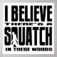 Você acredita em pé-grande? Acredito que há uma praça nesta floresta! A própria criatura do sasquatch está caminhando pela dentro da letra Q. O design de texto divertido em preto parece excelente em todas as cores claras e cores mais médias a escuras que não o preto.