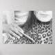 Uma fotografia a preto e branco de uma mulher a ficar com o cabelo estilhaçado. Esta arte de parede faz uma adição ideal a qualquer compro de beleza ou salão de cabelo. Faça-o ser moldado por nós ou faça-você-mesmo!
