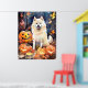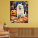 Get your furry friend ready for a howling good time with this adorable dog-inspired Halloween design! Featuring a spooky dog with pumpkins, this design is perfect for pet parents who want to include their four-legged family