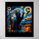 Poster Halloween Black Cat Comma La Starry Night Art Kama