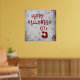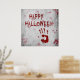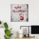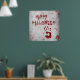 Uma ilustração horrível e assustadora do Dia das Bruxas, com uma impressão de mão sangrenta e uma espadilha de sangue num fundo gelado.
