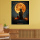 Poster Halloween entonado com lua cheia, velas e morcegos