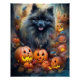 Pôster Halloween Keeshond Com Pumpkins Assustado