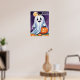 Atentando a atmosfera com este poster assustador com fantasmas esquisitos e abóboras assustadoras sob uma noite escura de Halloween. Perfeito para a decoração de Halloween.