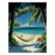 Uma cena tropical tranquila de praia, com uma rede esticada entre duas palmeiras balançando, com o oceano suavemente caindo na costa. A água turquesa brilhante estica-se até o horizonte, convidando o relaxamento. Folhas de palma verdes vibrantes movem-se suavemente na brisa, enquanto os conchas temperadas dispersas descansam na areia quente. Este cenário idílico captura a essência da calma, oferecendo uma fuga perfeita para o abraço pacífico da natureza.
