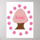 Esta poster apresenta uma imagem gráfica de uma cerejeira coberta de flor rosa e cercada por um círculo de flores bonito de cereja conhecidas como Sakura. Esta design foi criada para celebrar o Festival Japonês de Hanami e contém a palavra Hanami na cerejeira. A celebração marca Primavera à medida que pessoas se juntam para fazer piquenique debaixo das cerejeiras florescentes.