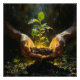 Cradle the future with this powerful symbolic artwork: two gentle hands hold rich soil cradling a vibrant young green seedling bathed in warm, glowing golden light. Dew-kissed leaves and radiant energy evoke themes of growth, renewal, hope, environmental stewardship, and new beginnings—perfect for Earth Day, eco-conscious homes, offices, meditation spaces, classrooms, or as meaningful gifts for gardeners, teachers, activists, and anyone passionate about sustainability and positive change. High-resolution digital print.