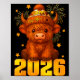 Poster Happy New Year 2026 Highland Cow & Party Hat N