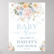 Este sinal de boas-vindas do chá de fraldas apresenta um design floral azul. O cabeçalho do script é uma imagem que não pode ser editada. Todo o outro texto é totalmente editável. Para personalização mais avançada deste design, basta selecionar o botão "Personalizar" acima.