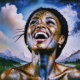 "Harmonia no Dourado e no Céu". Esta imagem combina uma musa afro moderna com elementos estrelados e ouros, celebrando o equilíbrio da força humana e da harmonia universal. Acentos metálicos e conexões cósmicas fazem disso uma peça visualmente deslumbrante para inspirar positividade e senso do infinito.