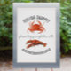 Uma ilustração de um caranguejo e lagosta com o texto "Sentir uma borda de encaixe" é uma design de mola inspirada em chambray. Personalize com sua hashtag de casamento.