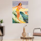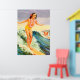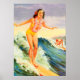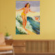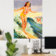 Poster Havaí, surfista havaiana em uma grande onda, vinta