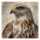 Um Hawk em uma aquarela detalhada com olhos expressivos é retratado contra um fundo macio e turvo. As cores naturais melhoram a aparência semelhante à vida.