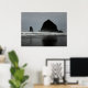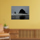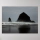 Fotografia da silhueta de Haystack Rock na praia de Cannon, Oregon, alterada digitalmente.