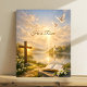 Celebrate the joy of Easter and the Resurrection with this peaceful Christian wall art featuring a glowing wooden cross by a serene lakeside, an open Bible, white lilies, and doves in flight beneath warm sunrise light. The he Is risen message adds a meaningful reminder of faith, hope, and renewal. This artwork is perfect for Easter décor, prayer rooms, church offices, or Christian home décor. It also makes a thoughtful religious gift for Easter, pastors, family members, and loved ones who cherish inspirational Christian art.